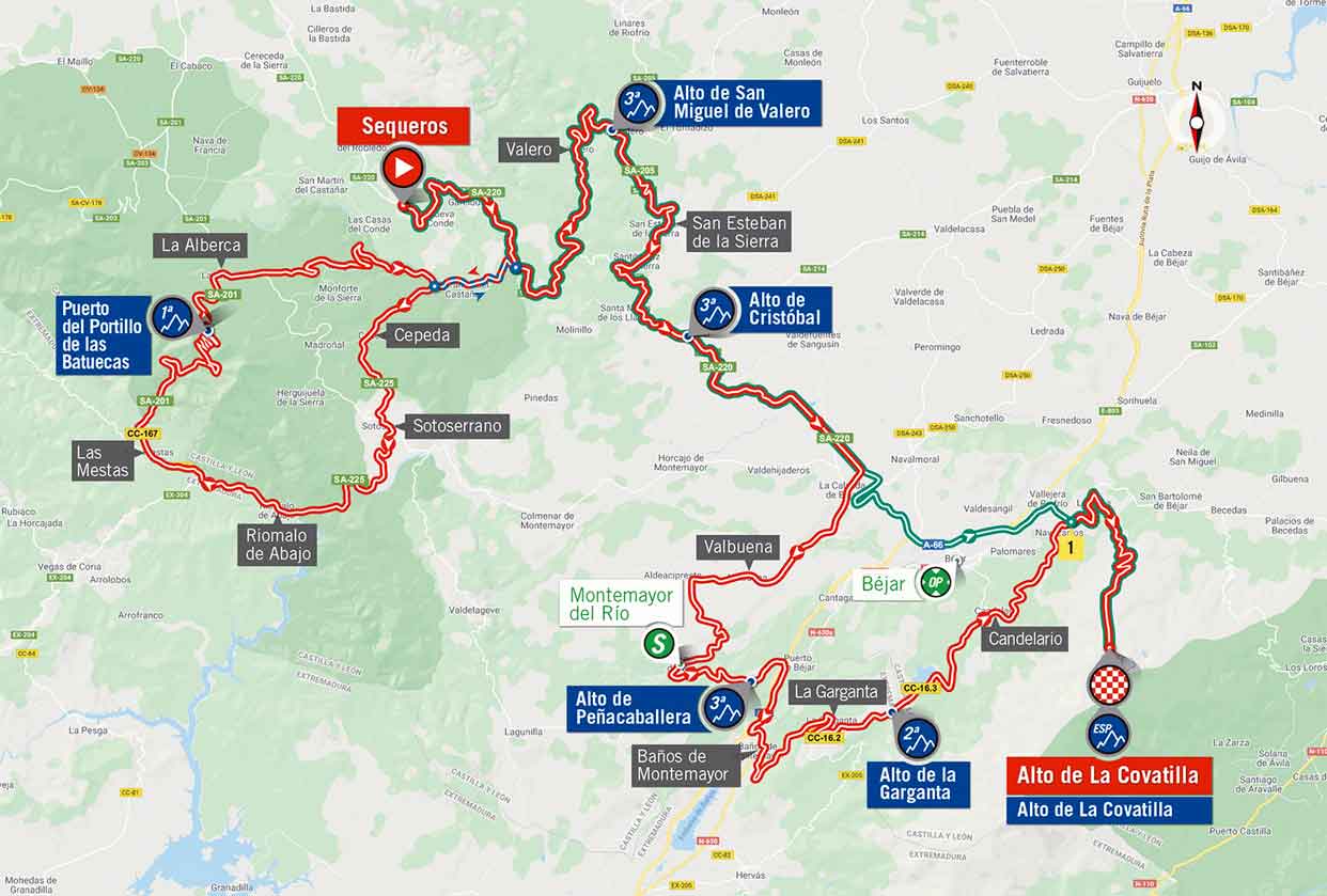 Die erste Steigung des Tages wartet bereits nach rund 40 Kilometern. Der Portillo de las Batuecas ist ein langer und schwieriger Berg. Gut möglich, dass man hier bereits versucht, das Tempo anzuziehen um den Druck zu erhöhen.
