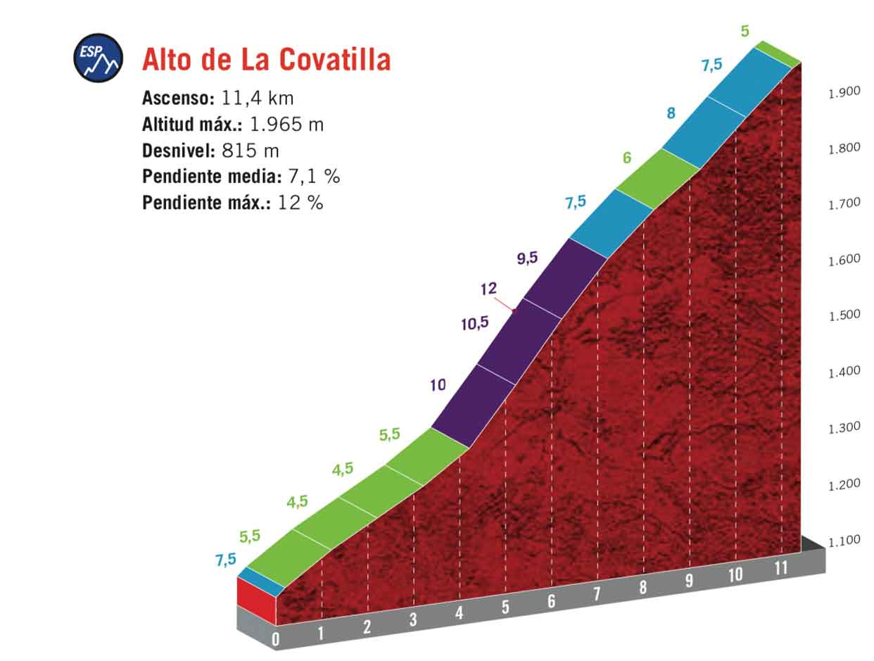 Das große Bergfinale gibt es dann am Alto de La Covatilla. Am Fuße noch moderat steil, geht es im Mittelteil meist mit zweistelligen Steigungsprozenten bergan. Hier bietet sich die Chance zur Attacke. Doch das Gelände ist offen und der Wind wird den Fahrer laut Vorhersage entgegenblasen.