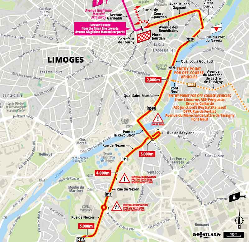 Von Libourne geht es nordwestlich nach Limoges. Nur drei Bergwertungen sind zu absolvieren, aber alle drei im letzten Drittel der Etappe. Die ersten rund 125 Kilometer sind flach. Der Sprint wird nach 79 Kilometern ausgetragen.