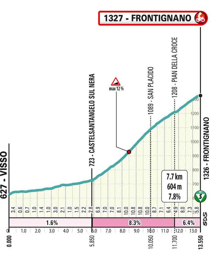 Die einzige Bergankunft des Rennens – vermutlich der Ort der Entscheidung in Sachen Gesamtsieg. Am Sonntag gibt es ein überwiegend flaches Teilstück zum Abschluss – so wird der Träger des Leadertrikots am Samstagabend wahrscheinlich auch der Gesamtsieger von Tirreno-Adriatico 2025 sein.