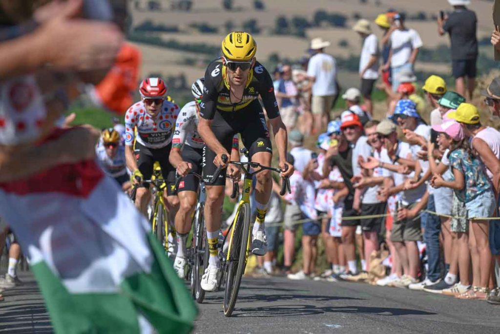 Grundsätzlich ist es wenig überraschend, dass die Mannschaft der Top-Favoriten an einem Tag für Ausreißer einen Fahrer vorn platzieren wollen. Doch Visma investierte viel Energie. Da können unterschiedliche taktische Überlegungen dahinterstecken. Zum einen kann man das UAE-Team zur Arbeit im Feld zwingen, vor allem dann, wenn es anderen Klassementfahrer in die Gruppe des Tages schafften. Zum anderen kann man sich hinten in der Nachführarbeit raushalten, sollte die Konkurrenz die Verantwortung weiter geben wollen. Und natürlich kann man an einem Tag für Ausreißer nur um den Etappensieg fahren, wenn man in der Gruppe des Tages vertreten ist. Oder lag das Ziel des Teams vor allem daran, zu Beginn für Attacken zu sorgen und der Konkurrenz „Stress“ zu bereiten? Den Druck hoch halten?