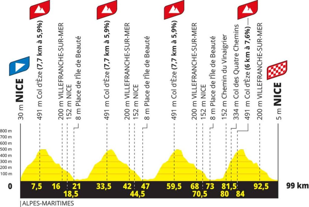 Die 99 km kurze Schlussetappe am 9. August mit Start und Ziel in Nizza hat es in sich: Gleich vier Mal ist auf dem Rundkurs der bekannte Col d’Èze zu befahren (Paris-Nizza lässt grüßen), der einen Kilometer lang durchgängig mehr als 10 % steil ist. Auch die Abfahrt zur Promenade des Anglais lädt zu Attacken ein und verspricht ein packendes Finish dieser Tour de France Femmes.