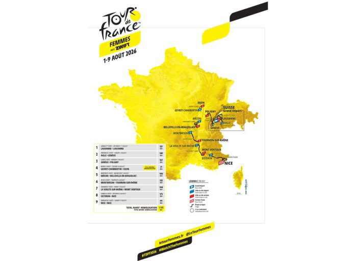 Die Tour de Frances Femmes startet im kommenden Jahr in der Schweiz und endet nach 9 Etappen an der Côte d’Azur. Die fünfte Ausgabe der neugestalteten Frankreich-Rundfahrt wartet wieder mit zwei Rekordmarken auf: Die Fahrerinnen müssen insgesamt 1.175 Kilometer mit 18.795 Höhenmetern absolvieren. Das am 23. Oktober in Paris vom Veranstalter ASO offiziell vorgestellte Profil der Rundfahrt verspricht reichlich Abwechslung. Es gibt drei eher flache Etappen, drei hügelige Teilstücke, ein Einzelzeitfahren und zwei Bergetappen. Highlight der Tour ist zweifellos die Ankunft auf dem Mont Ventoux, dem kahlen Provence-Riesen. Auch der anspruchsvolle Schlusstag in Nizza verspricht Spannung, ist der knackige Anstieg am Col d’Èze doch viermal zu bezwingen.