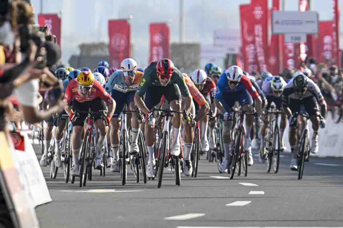 Nach dem Start wurde attackiert und erneut zeigte sich Remco Evenepoel offensiv. Doch das Feld ließ ihn nicht ziehen. Dann formierte sich nach einigen Kilometern die Gruppe des Tages. Callum Thornley (Red Bull-Bora-hansgrohe), Daan Hoole (Decathlon CMA CGM), Ezra Caudell (Modern Adventure Pro Cycling), Lorenzo Milesi (Movistar) und Aivaras Mikutis (Tudor Pro Cycling) fuhren zwar zwischenzeitlich etwas mehr als eine Minute Vorsprung heraus, doch mehr gönnte ihnen das Feld nicht. Dennoch behaupteten sich die Ausreißer lange an der Spitze, erst rund zwei Kilometer vor dem Ende wurden sie eingeholt.